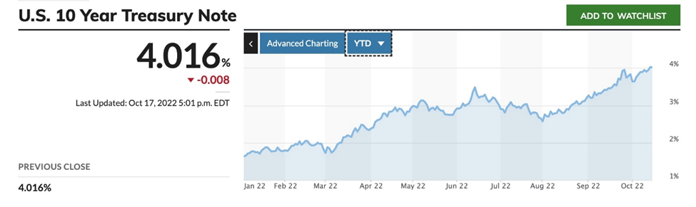 U.S. Treasury Note (10-year) on October 19, 2022, via Marketwatch and aheadoftheherd.com.