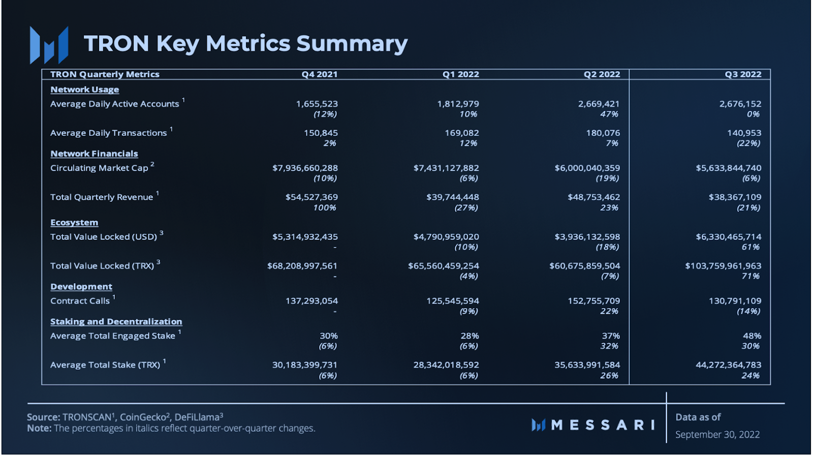 Geneva, Switzerland / November 8, 2022 / – Messari, the leading provider of crypto market intelligence, released two quarterly analysis reports related to the TRON ecosystem – State of TRON Q3 2022 and State of USDD Q3 2022. Both reports indicated positive conclusions about the stable and secure strength of USDD and the TRON network as a whole.