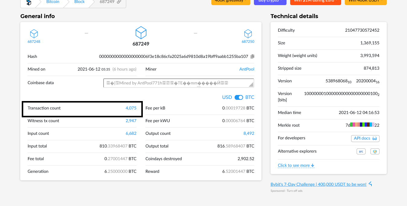 This record figure is almost twice the average transactions per block recorded on June 11 and is four times the typical transaction count for Bitcoin blocks.