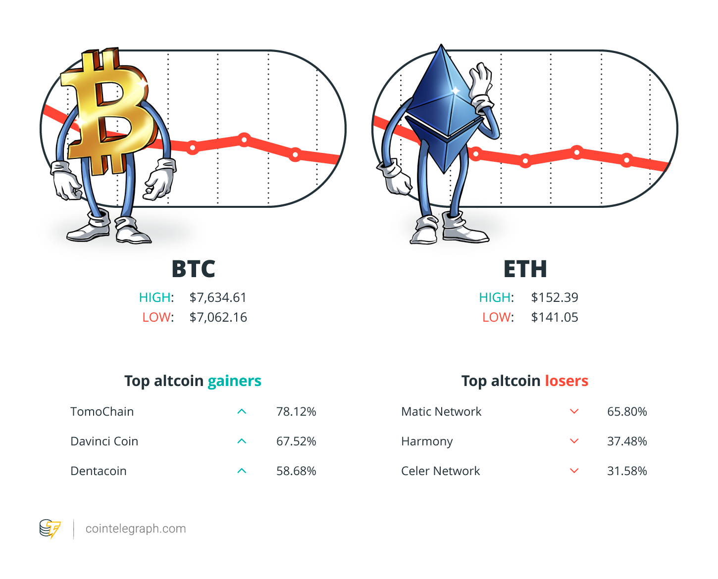 The top three altcoin gainers of the week are TomoChain, Davinci Coin and Dentacoin. The top three altcoin losers of the week are Matic Network, Harmony and Celer Network.