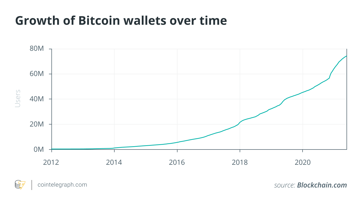 Though the function does not consider any potential future increases based on a rise in interest that could manifest in 2021 following an unexpected growth in Bitcoin, this exercise is used to estimate the growth over time in the number of wallets.