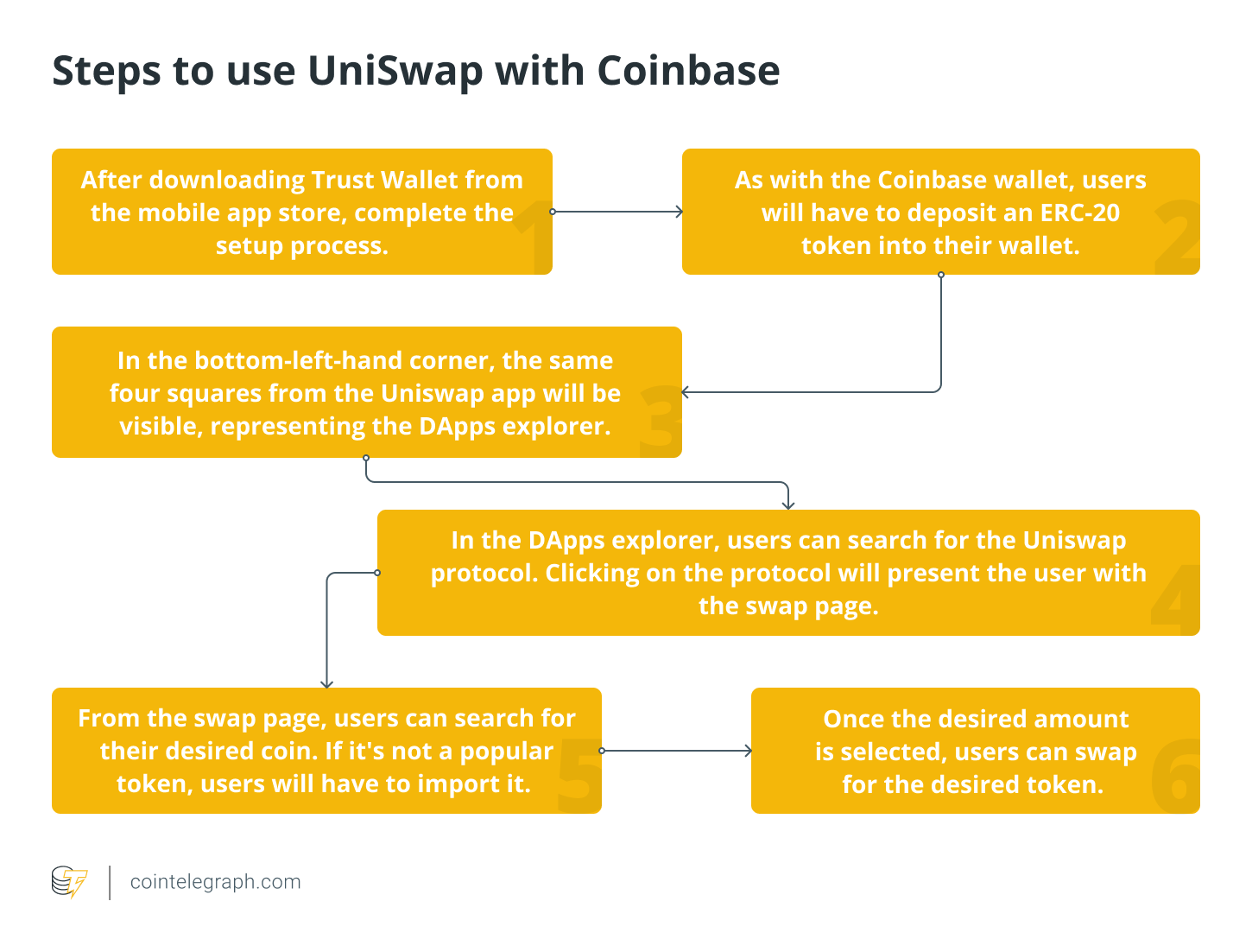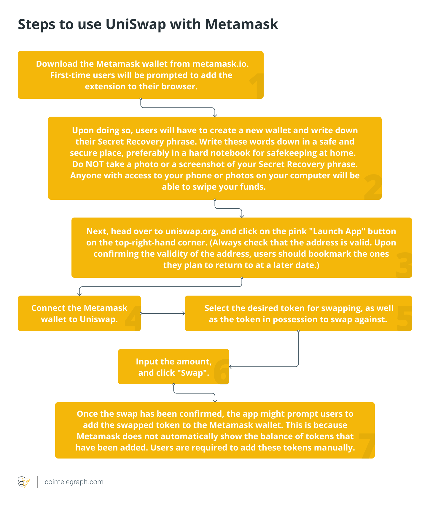 Steps to use Uniswap with Metamask are listed in the figure below: