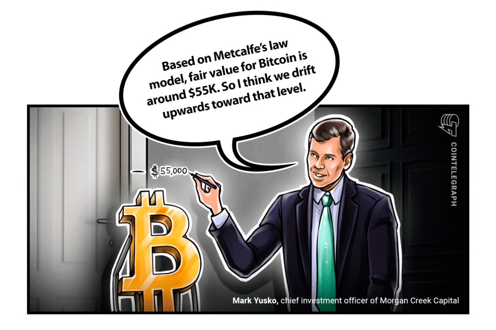 “Based on Metcalfe’s law model, fair value for Bitcoin is around $55K. So I think we drift upwards toward that level.”