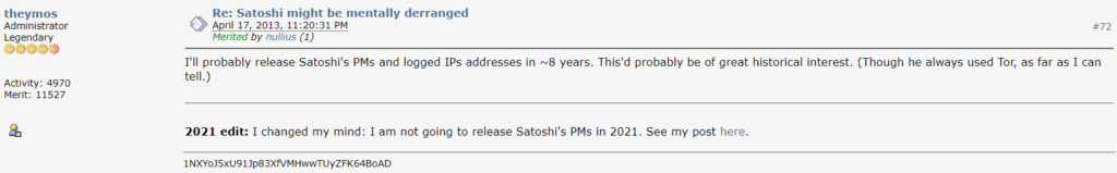 Nakamoto was a stickler for anonymity. His public interactions on Bitcointalk and his emails were all reportedly done using the IP-masking browser, Tor. It’s the main reason his public IP address could never be traced back to him.