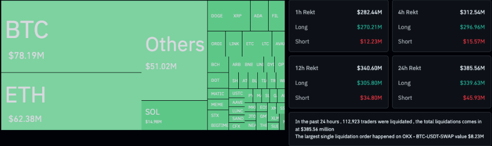 The sharp decline forced the liquidation of long Bitcoin positions worth over $270 million. Source: CoinGlass.
