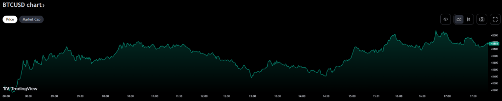 BTCUSD trading at $41,877 on the daily chart: TradingView.com