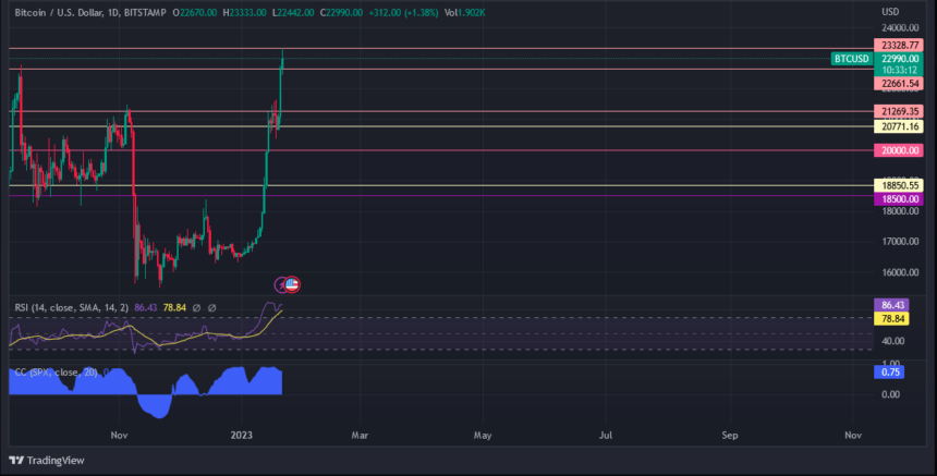 Bitcoin Hits $23,000 As Crypto Market Cap Revisits $1 Trillion Mark