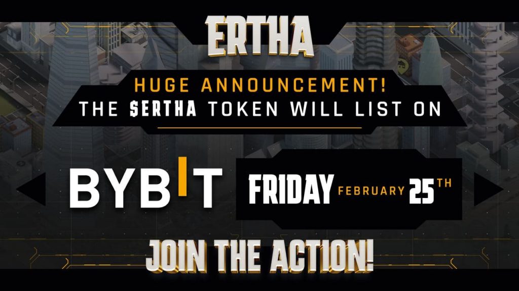 Ertha Metaverse, one of blockchain gaming’s most talked about metaverses has today announced the listing of the ERTHA token on another of the crypto industry’s top exchanges – ByBit.
