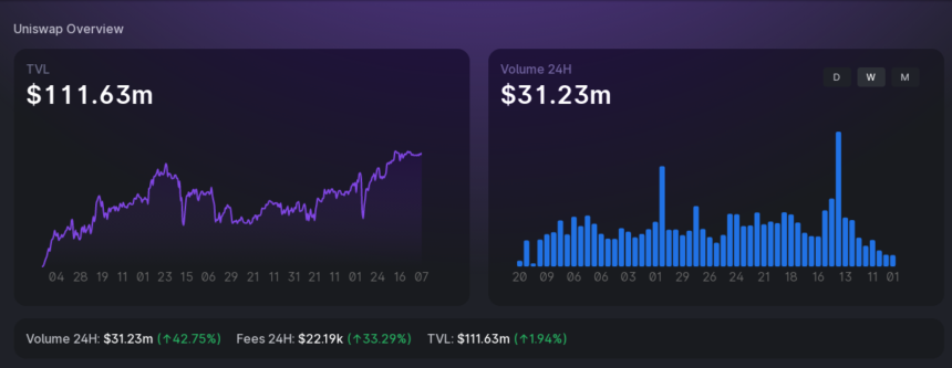 The DEX surprisingly accomplished that with a sub-$100 million TVL, but as of writing Uniswap’s TVL on Polygon is at $111.21 million, according to the DEX’s public dashboard.