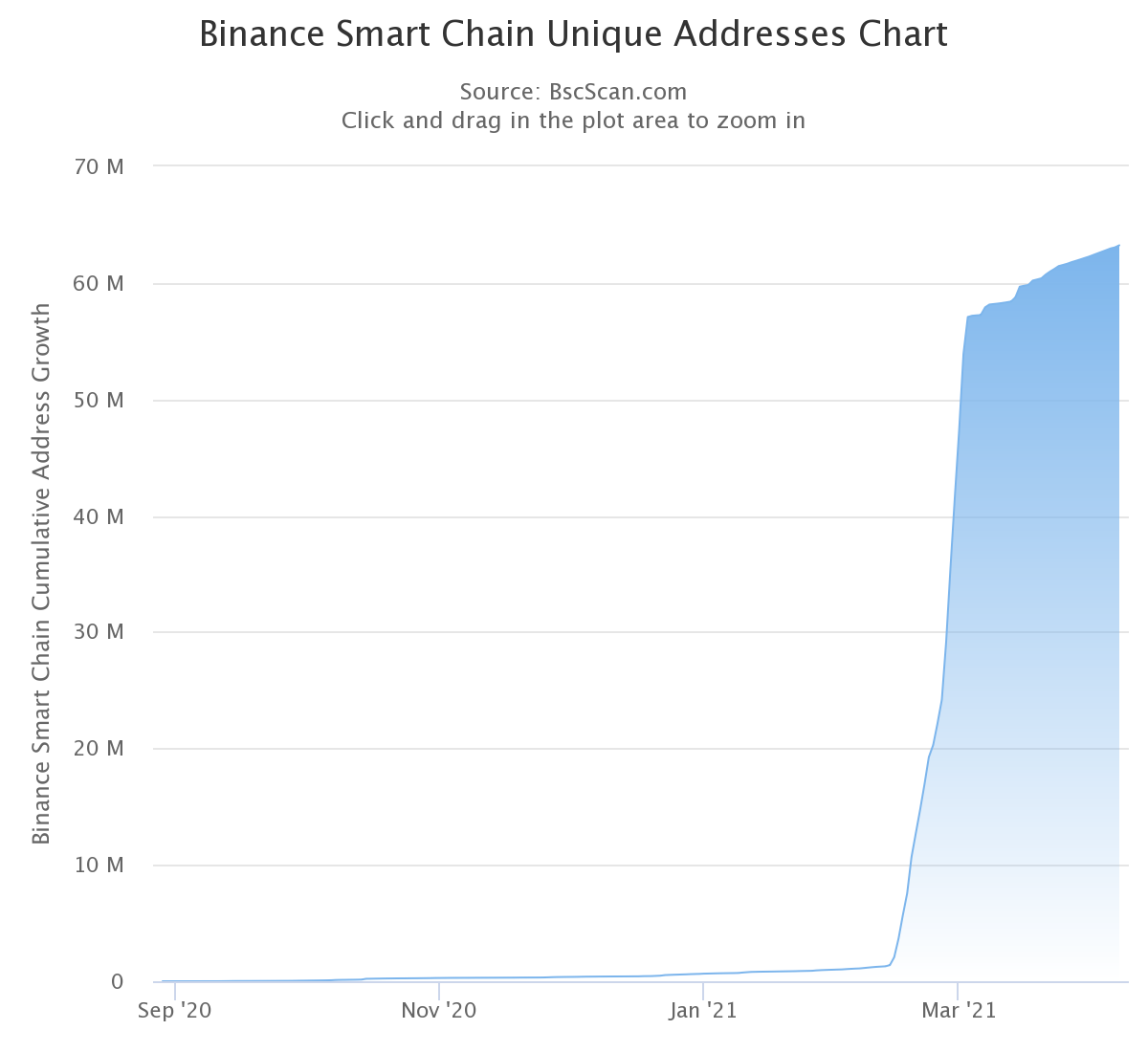 Add to that compatibility with the Ethereum network, and there are compelling reasons for users and devs to shift to BSC. Over 63mn unique addresses are currently using the network. With mid-February seeing a vertical uptake of users coming on board.