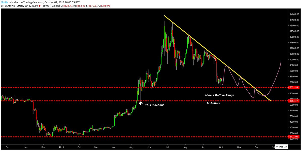 The analyst, Filb Filb, a pseudonymous trader who in September posted the below chart, drawing a forecast of the price trend Bitcoin could see heading into Q2 of 2020.