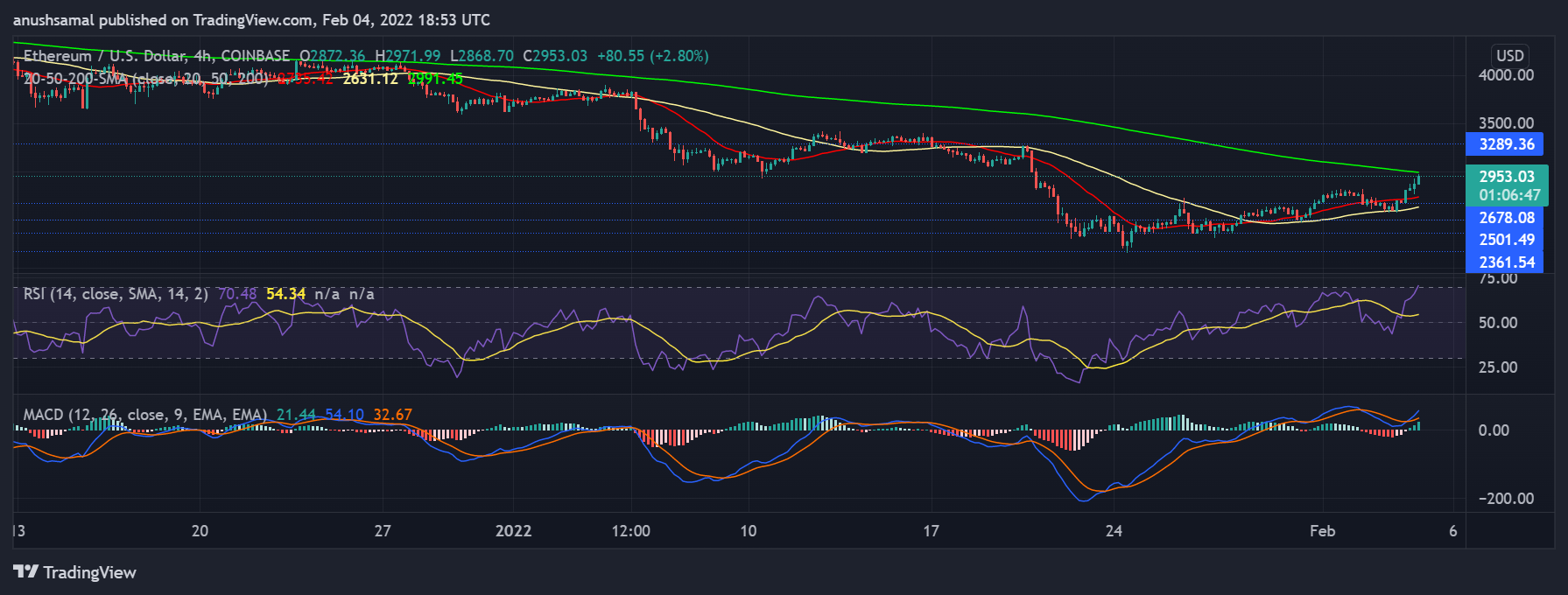 Ethereum was seen changing hands for $2953.03 and could soon eye the $3000 price level with continued bullishness in the market. Buyers for both the asset resurfaced at press time, pushing the coins near the overbought zone.