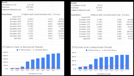 As ETHphoria evolves, Pods will continuously improve the vault’s functionality, you can check all the details in the Pods´ blog post by Rafaella. Pods´ blog readers can check the backtest of this strategy and how it would have performed if it were available when ETH started in 2015 until the present.