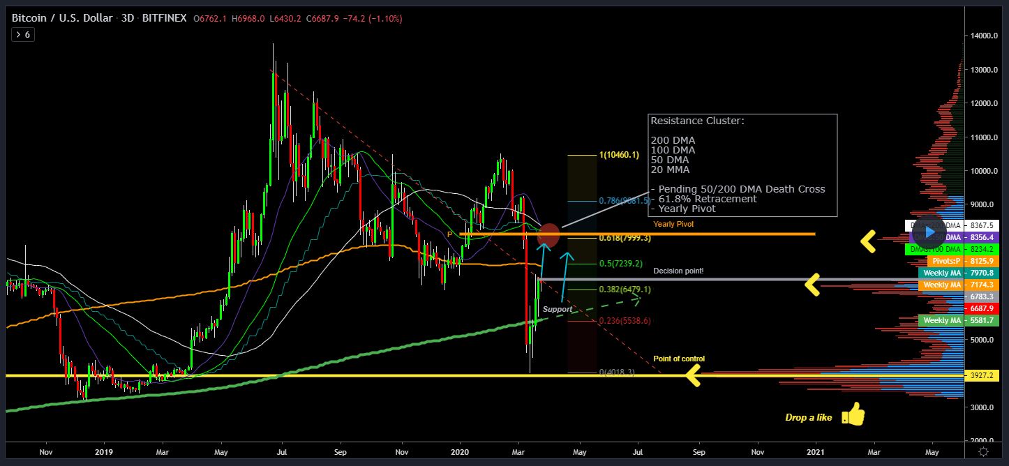 In a recent TradingView analysis, cryptocurrency analyst Filb Filb drew attention to the importance of $8,000, a price point which he stated has the “worst cluster of resistance seen since the bear market of 2018.” Indeed, he noted that the following technical levels are currently situated at $8,000 (subject to change over the next few weeks):