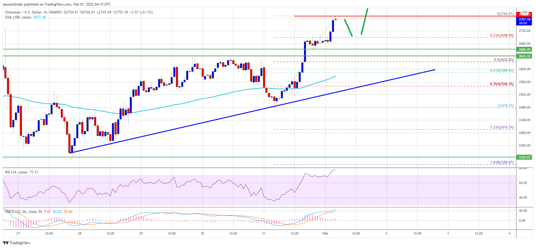 Ethereum started a steady increase above the $2,650 resistance against the US Dollar. ETH price could rise further if there is a clear move above the $2,800 level.
