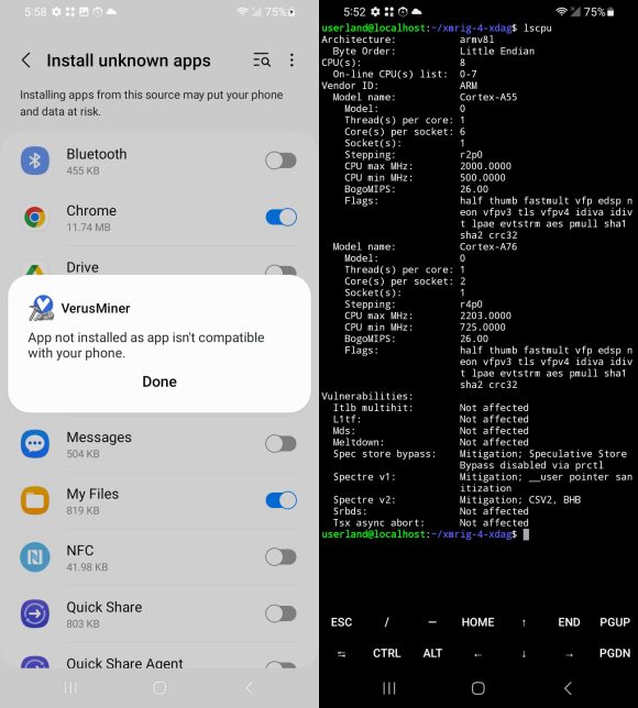 If you are getting into crypto mining using a smartphone for coins such as VerusCoin (VRSC) you should be extra careful what “mining hardware” or a smartphone you are picking up to use. One would normally assume that nowadays even the cheap smartphones would do just fine for crypto mining provided that they do come with recent Android OS versions (mining on Apple iOS devices is pretty much a no go) and decent 64-bit hardware in terms of ARM-based processors with 4 or even 8 cores available. Even sub $100 USD phones nowadays normally do manage to give you at least that, but it is not always the case as you should get to understand now…
